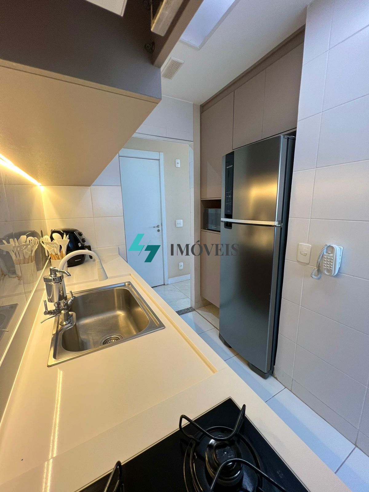 Apartamento com 2 dormitórios, sendo 1 suíte – todos com armários planejados; Sala estendida com 2 ambientes – possibilidade de reverter o terceiro dormitório; sacada com vista livre; banheiros modernos com pia em granito e cubas sobre postas com gabinetes novos; Cozinha planejada com acabamento diferenciado, fogão coocktop , forno embutido; lavanderia com armários. Acabamento em gesso com teto rebaixado e iluminação embutida.