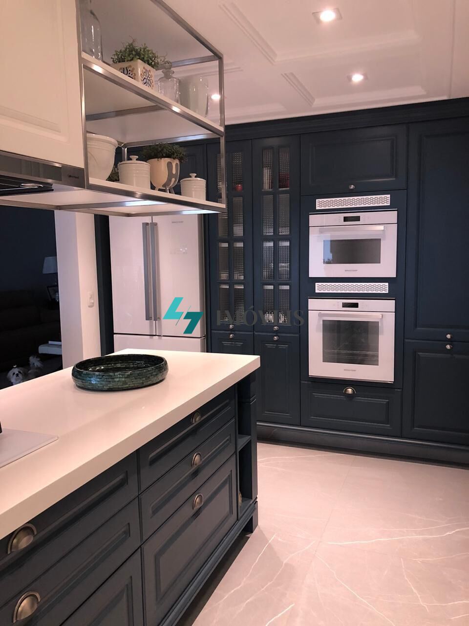 Os aparelhos eletrodomésticos que aparecem nas imagens ficam na unidade, sendo : geladeira, máquina de lavar pratos, microondas, forno elétrico, cooktop, exaustor de ilha, máquina de lavar e secar roupas... todos Brastemp linha vitreous branco.