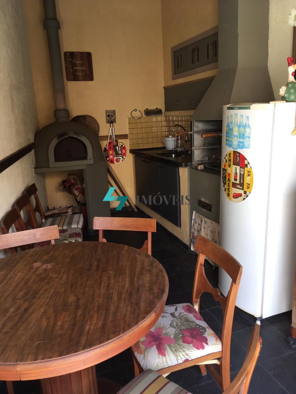 ÁREA GOURMET COBERTA COM TELHA CERÂMICA COM ARMÁRIOS, FORNO DE PIZZA E CHURRASQUEIRA.