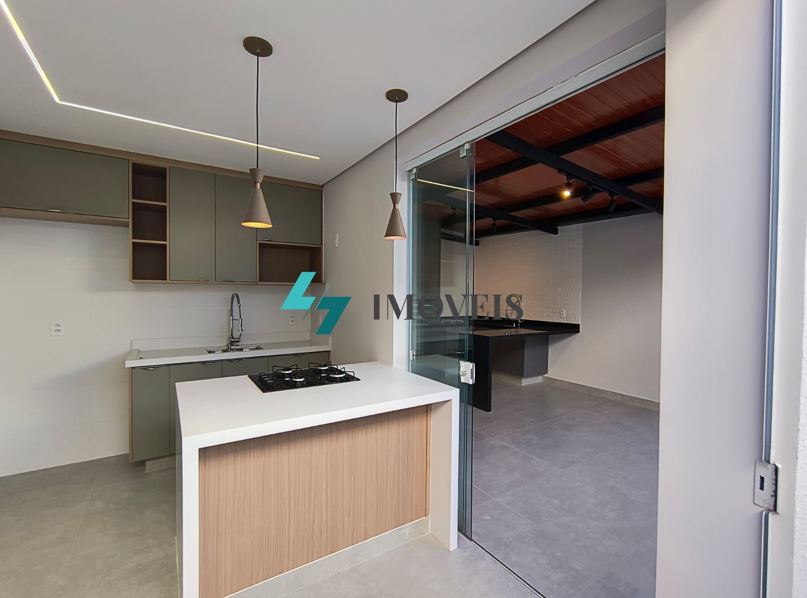 3 quartos (1Suíte) – todos com armários; sala 2 ambientes com ar condicionado, painel para TV e integrada à área gourmet; cozinha planejada, com balcão e fogão coocktop ; área gourmet coberta, com churrasqueira, balcão em U e pia em granito; aquecimento solar, piso em porcelanato e carpete de madeira; duas vagas frontais cobertas.