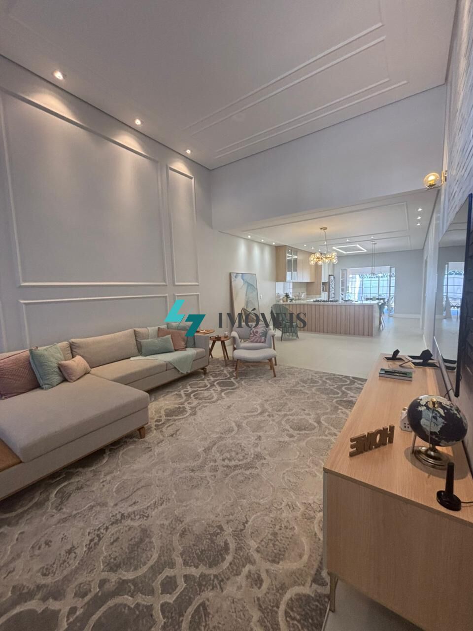 Acabamento com porcelanato, gesso, teto rebaixado com iluminação embutida. Quintal gramado e com pergolado.