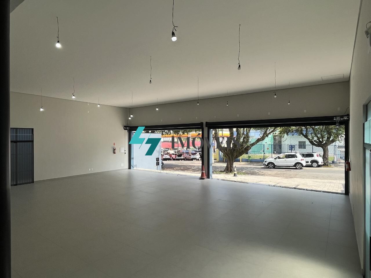 SALÃO NOVO - 300 m², sendo 240 m² no nível da rua e 60 m² de mezanino; pé direito de 5 mts.; 8 banheiros,2 adaptados para PCD e dois lavabos sociais, duas copas; piso porcelanato; guarda corpo em vidro temperado, placas de comunicação visual, marquise metálica frontal, porta de aço de enrolar automatizada; preparação em diversos pontos para ar condicionado; preparação para internet; 6 vagas frontais; , paredão frontal para anúncios além de áreas livres externa na lateral e nos fundos.
